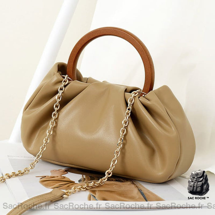 Sac À Main Anse Ronde Bois Chaîne Or Kaki Sac Main Femme